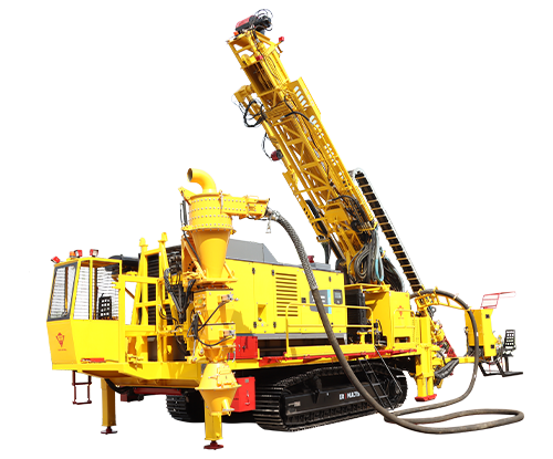 The PRD Multistar is a versatile drilling rig adept at DTH, reverse circulation and core drilling with a 1200-meter capacity and adjustable drilling angles from 45 to 90 degrees. Powered by a 360 HP deck engine, it features a durable welded steel platform and a twin tubular box mast for stability. Its hydraulic system, including double-acting cylinders and a 1:2 chain reeving system, ensures smooth operation, while displacement piston pumps manage feed, rotation, and winches. The rig's 850-liter hydraulic tank supports demanding tasks, and the swing-out centralized control panel provides easy access to essential controls. Optional features like mine safety attachments, a spin cage, and an RC fitted cone splitter enhance its functionality, with mounting options for trucks, crawlers, or skids.